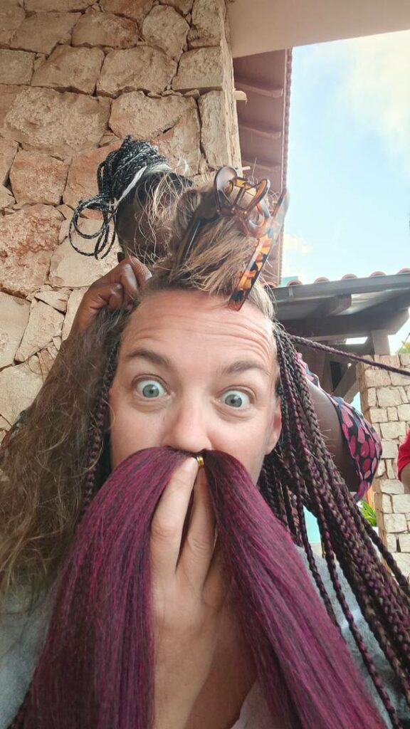 Je n’y reste pas très longtemps car j’ai réservé à 15h un deuxième calvaire. Et seule, celui-ci. En effet, comme à mon habitude, j’ai voulu tester le coiffeur local (après l’avoir testé au Vietnam, au Monténégro, en Egypte…). Et ici, la spécialité locale, c’est le tressage de la tête. La dernière fois que j’avais expérimenté cette technique, c’était en Egypte, et j’avais souffert le martyr…. Mais pourquoi je recommence sans déconner ?