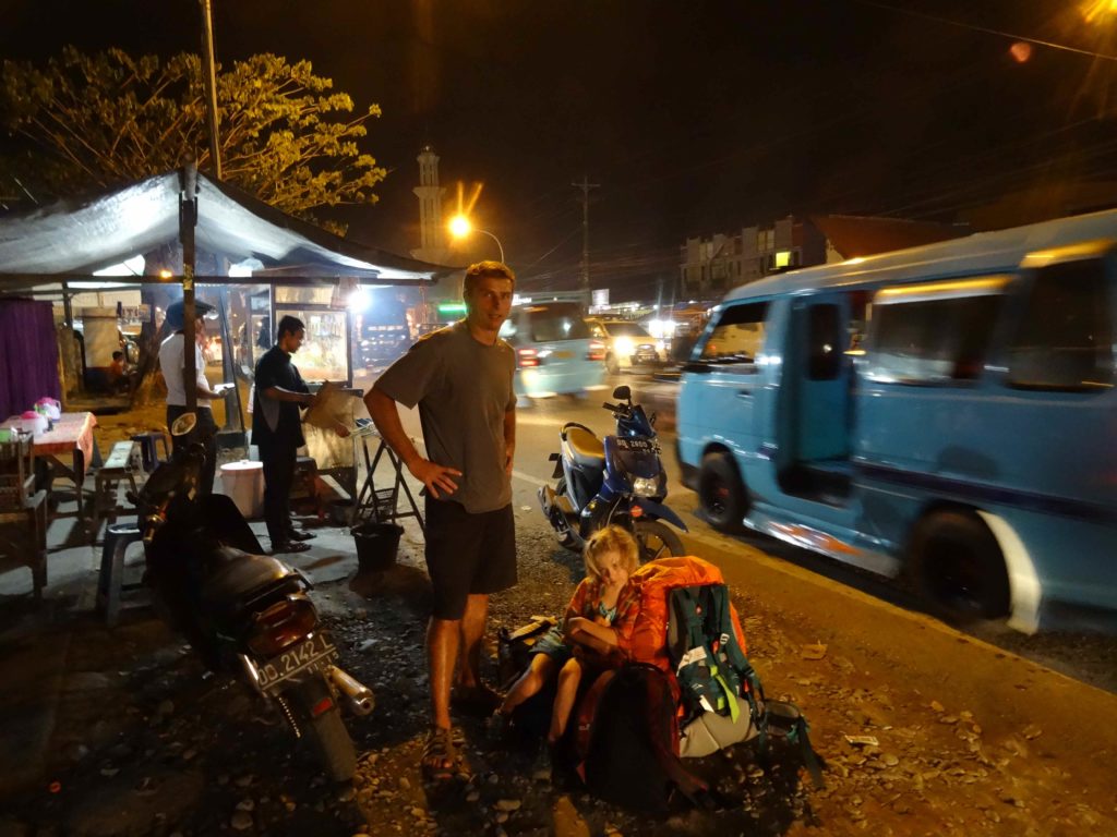 Sur le trajet retour, des bus partant eux aussi pour le pays Toraja nous abordent. Ils partent vides ou presque. Chaton croit comprendre que c’est notre bus et explique au chauffeur que nos valises sont restées à la gare routière. Il part en courant en direction de nos sacs, mais moi je reste au pas, j’ai comme l’impression que Chaton n’a pas compris. Et effectivement, notre vendeur nous confirme que notre bus n’est pas parti et qu’il partira à 21h, comme convenu. Le bus nous attend toujours un peu plus loin, Chaton y retourne pour expliquer la situation au chauffeur. Au retour, il m’apprendra que ce bus prenait 150.000 Rs par personne. Yes ! Nous payons moins cher !
