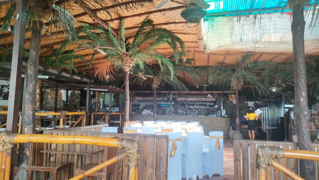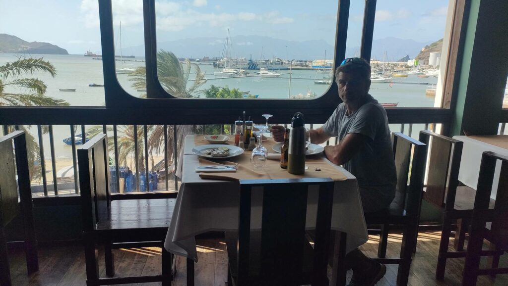 On voulait un truc très local, mais nous ne trouvons pas. La faim l’emporte mais le cadre joue beaucoup également. On se retrouve donc dans un restaurant assez chicosse au décor original avec vue sur la mer.