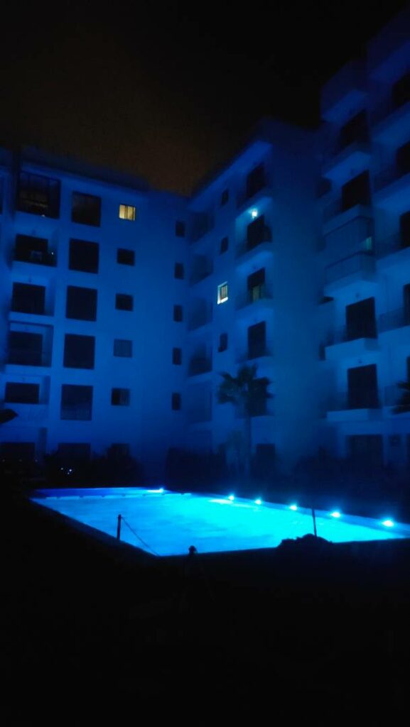En sortant de la résidence, nous discutons avec deux hommes pour savoir comment rejoindre Casablanca. Car pour l’instant, nous sommes tout près de l’aéroport mais à 40 minutes en voiture de Casa. D’après eux, le mieux, c’est en taxi, mais il faut marcher une petite demi-heure pour rejoindre l’endroit où ils se trouvent. Allons-y gaiement !