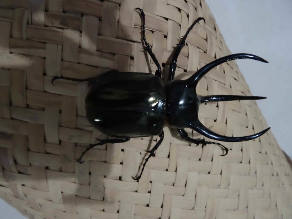 Notre voisin de chambrée, un allemand, a eu la drôle d’idée de ramener un gros scarabée qu’il a trouvé sur la route. Belle bête hein ?